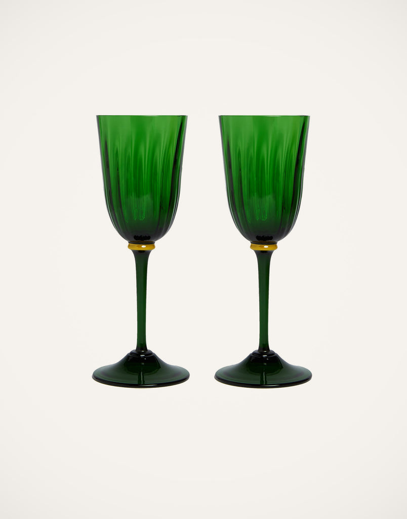Des verres à vin, mais qu’ils soient DoubleJ. Caractérisé par un style maximaliste, ce lot de deux verres est soufflé à la bouche à Venise et présente des détails striés ainsi qu’un pied sophistiqué en verre de Murano transparent. Parfaits pour égayer vos dîners quotidiens sur une nappe blanche (pourquoi pas !) ou, associés à nos autres couleurs, pour un apéro vibrant. Chaque verre présente tous les signes et marques uniques des méthodes de production de l’île : ces volutes, bulles et marques témoignent de l’incroyable savoir-faire artisanal de nos artisans.